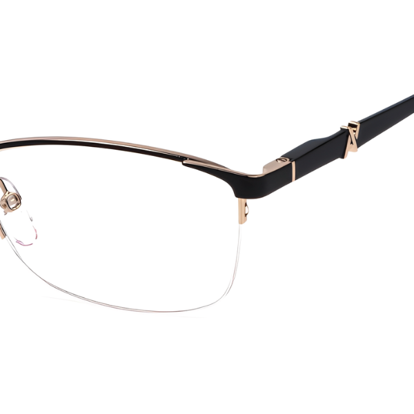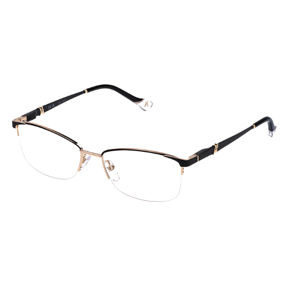 Os Yalea VYA 164 são óculos graduados femininos com uma armação de estilo meia-armação e formato quadrado, desenhados para um visual contemporâneo e elegante. Estes óculos destacam-se pela combinação de materiais metálicos e detalhes em acetato.