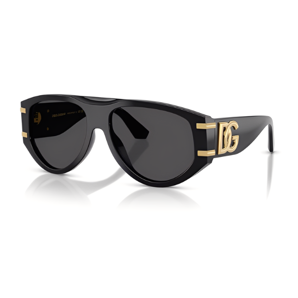 Detalhes em metal na parte frontal e o distinto logotipo DG cruzado em metal nas hastes. Uma declaração de luxo que reflete a elegância atemporal e o trabalho artesanal Dolce & Gabbana.
