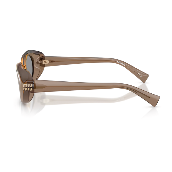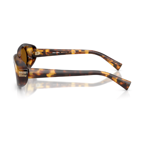As hastes finas em acetato leve se estendem a partir do spoiler, que exibe com orgulho o logotipo da Miu Miu em acabamento metálico.