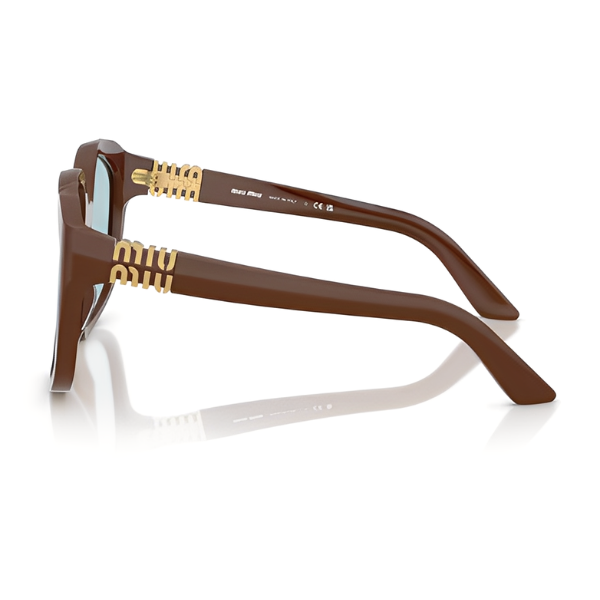 A Miu Miu revelou estes óculos de sol oversized, de inspiração vintage, no desfile Primavera-Verão 2025, que esbanjam personalidade ousada. Com uma armação marcante em acetato e lentes expansivas em cores contrastantes, cada par é finalizado com um elegante logotipo metálico nas hastes, adicionando um toque refinado ao design ousado.